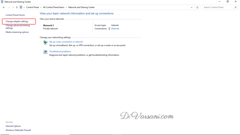 1. Go to Network and Sharing Centre. (Note: – Here you have to go to Network and Sharing centre from Control Panel. You may find Network and Internet and then Network and Sharing Centre or you can get Network and Sharing Centre directly, depending on your Control Panel view mode)